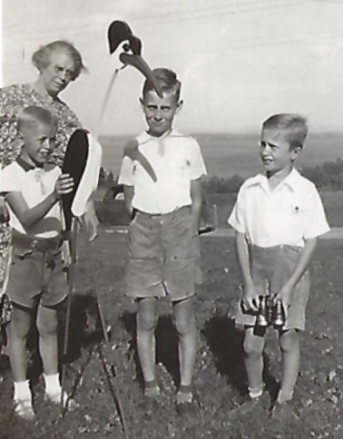 Back row L to R: Ruby Bigalow, Rosemary Bigelow, Lilian Bigelow, Jocelyn Bigelow. Front row L to R: Bruce Bigelow, Galen Bigelow, David Bigelow, Tom Bigelow, Ted Bigelow Sr., Barbara Bigelow Stevenson, Stephen Bigalow, Diane Bigalow, June Bigalow, Andy Bigalow, Ted Bigelow III, Ted Bigelow Jr.